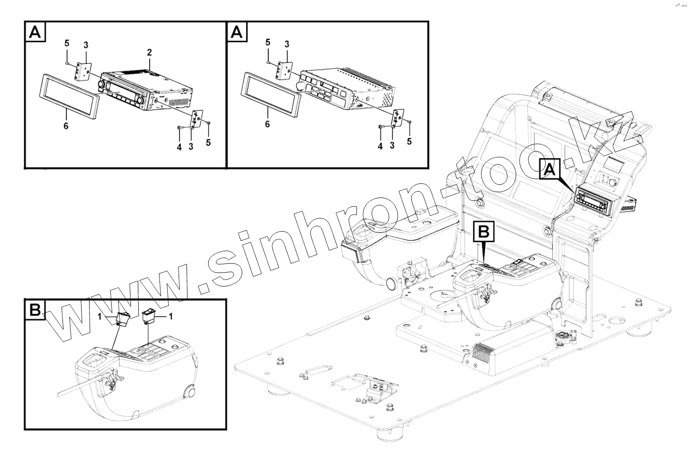 Каталог запасных частей к технике: SDLG LG6210E. Radiocassette recorder with mounting details