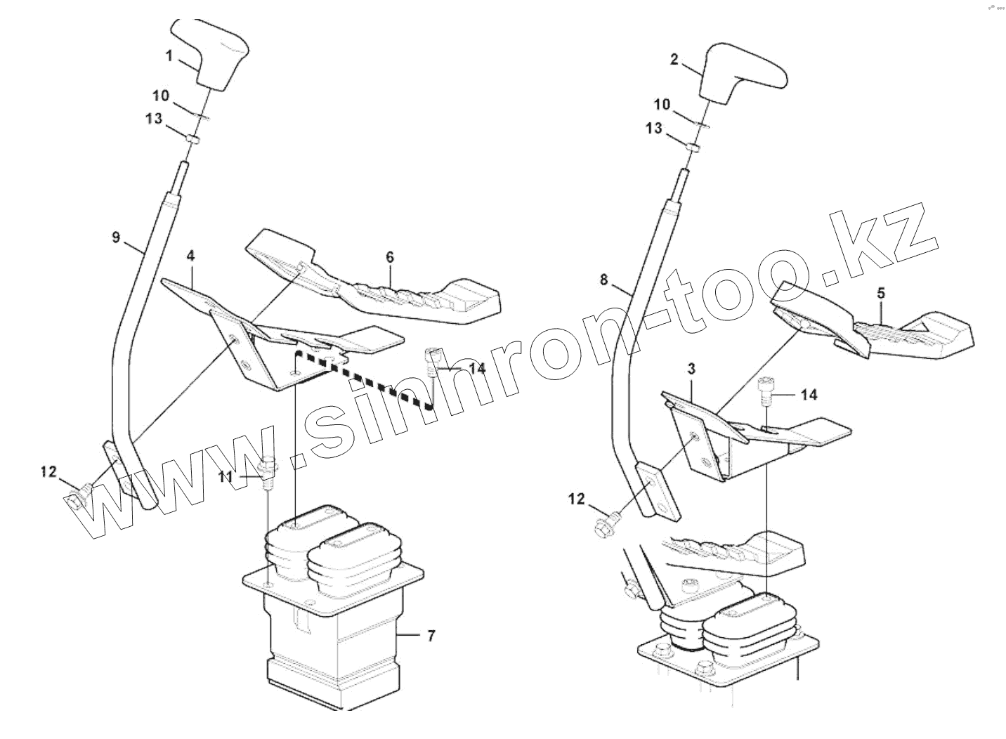 Каталог запасных частей к технике: SDLG LG6210E. Remote control valve pedal with plug-in parts