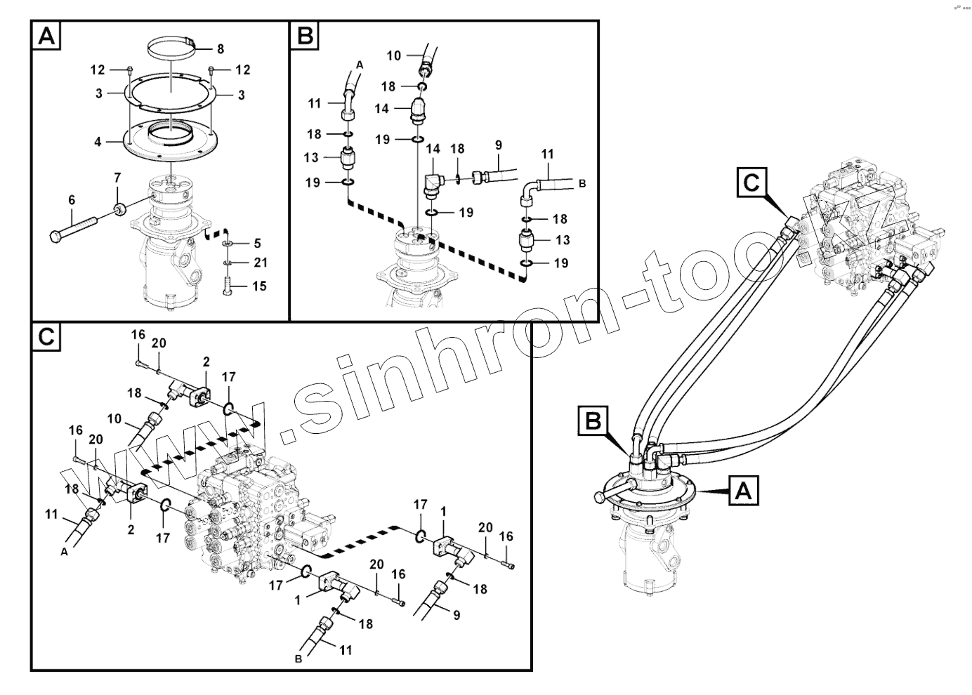 Каталог запасных частей к технике: SDLG LG6210E. Swivel joint line, swivel joint control valve