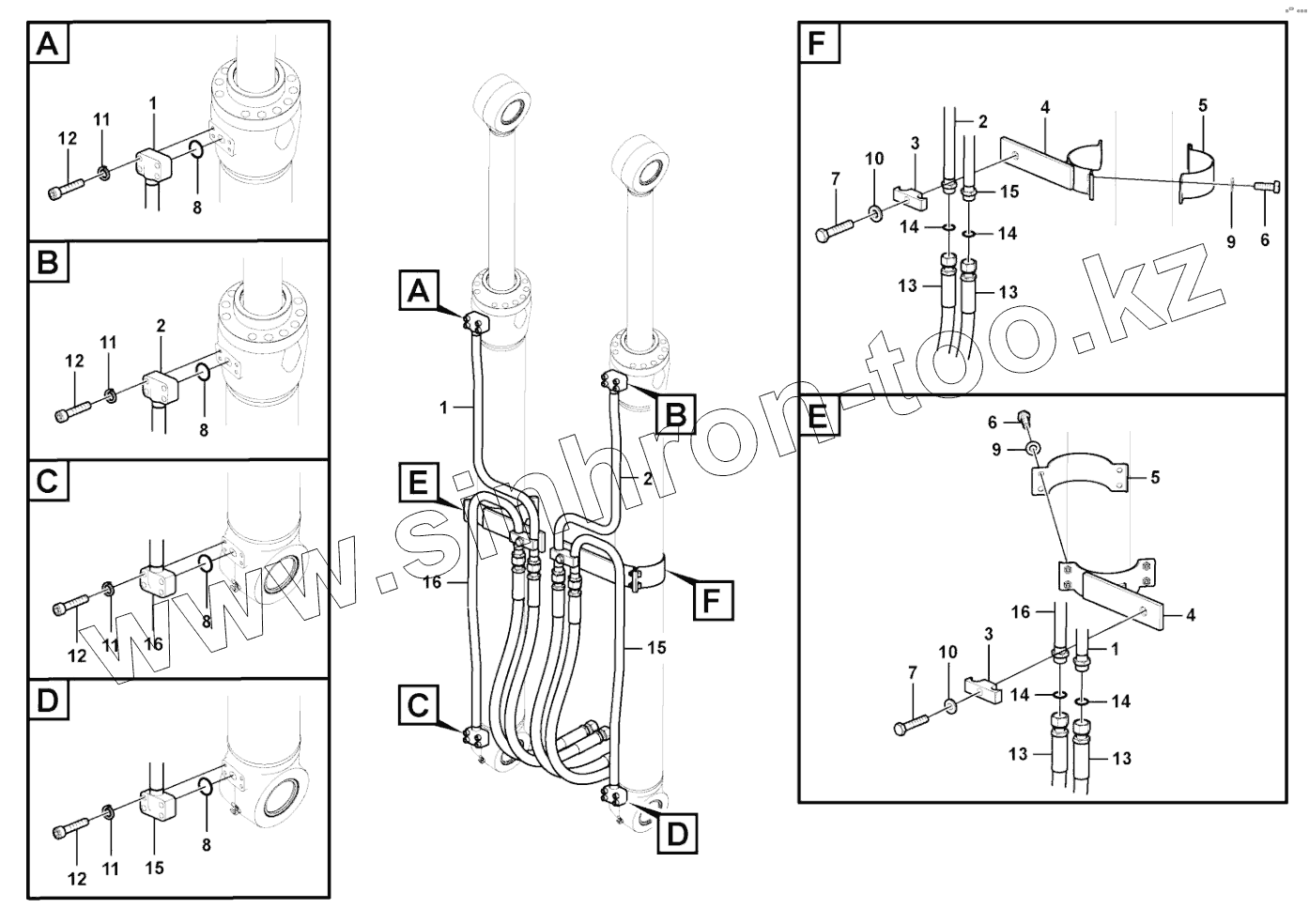 Каталог запасных частей к технике: SDLG LG6210E. Working hydraulics, boom cylinder
