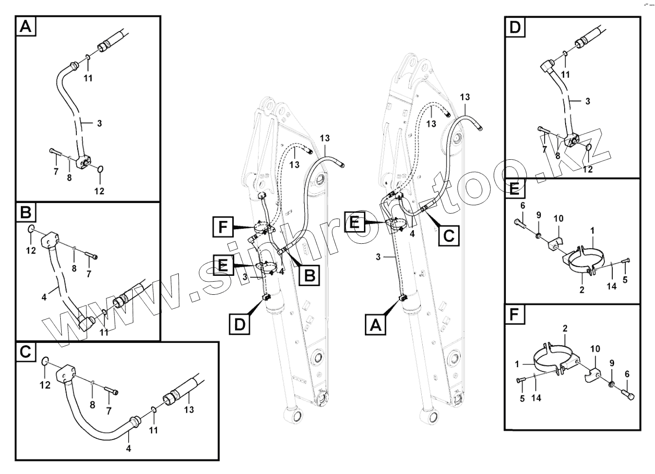 Каталог запасных частей к технике: SDLG LG6210E. Working hydraulics, bucket cylinder on arm