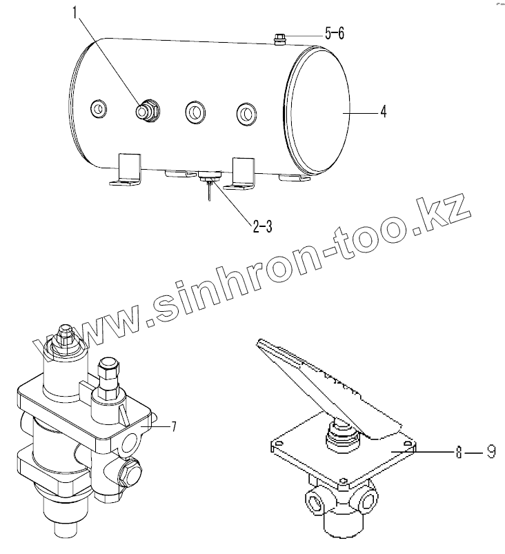 Каталог запасных частей к технике: SDLG LG918. LG9180J2 Gas tank, brake valve, water separator
