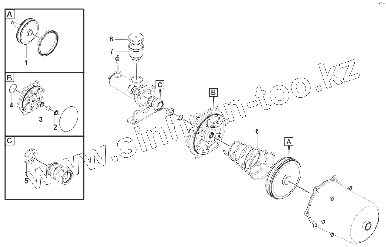 Каталог запасных частей к технике: SDLG LG933. Pneumatic cylinder (340201)