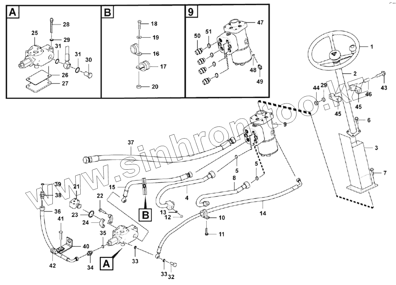 Каталог запасных частей к технике: SDLG LG933. Steering gear system