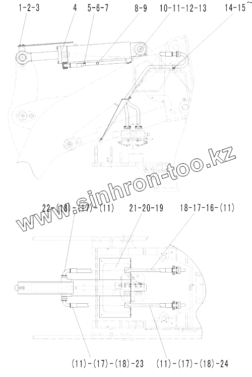 Каталог запасных частей к технике: SDLG LG933L. Гидроцилиндр поворота ковша в сборе