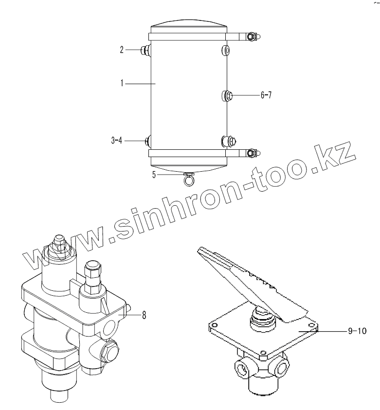 Каталог запасных частей к технике: SDLG LG936. AIR RESERVOIR BRAKE CONTROL VALVE AIR DRYER