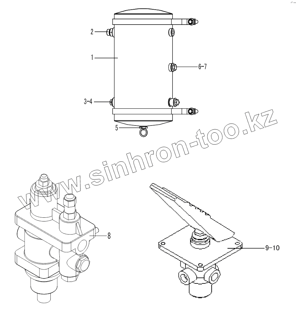 Каталог запасных частей к технике: SDLG LG936. AIR RESERVOIR, BRAKE CONTROL VALVE, AIR DRYER