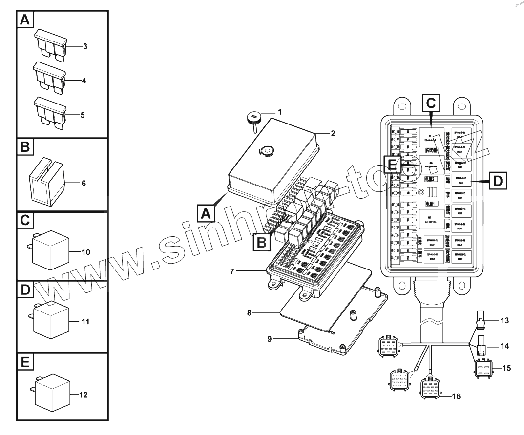 Каталог запасных частей к технике: SDLG LG936L. Fuse and relay unit (330602)