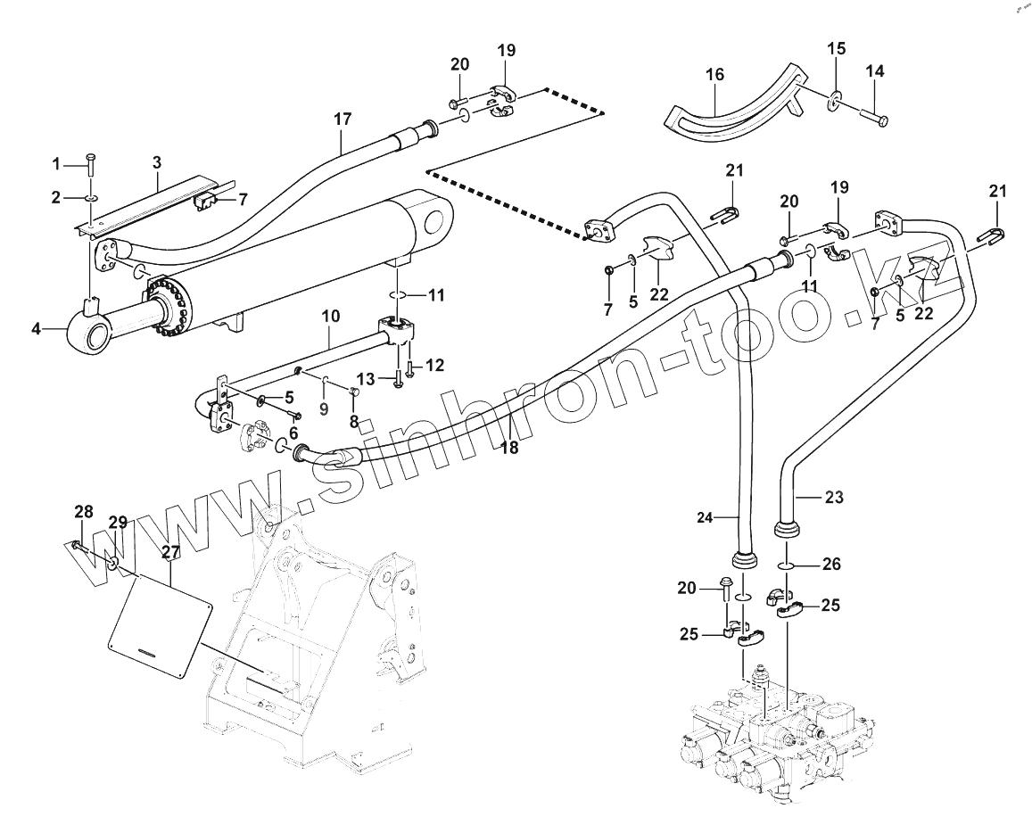 Каталог запасных частей к технике: SDLG LG936L. Tilt cylinder system