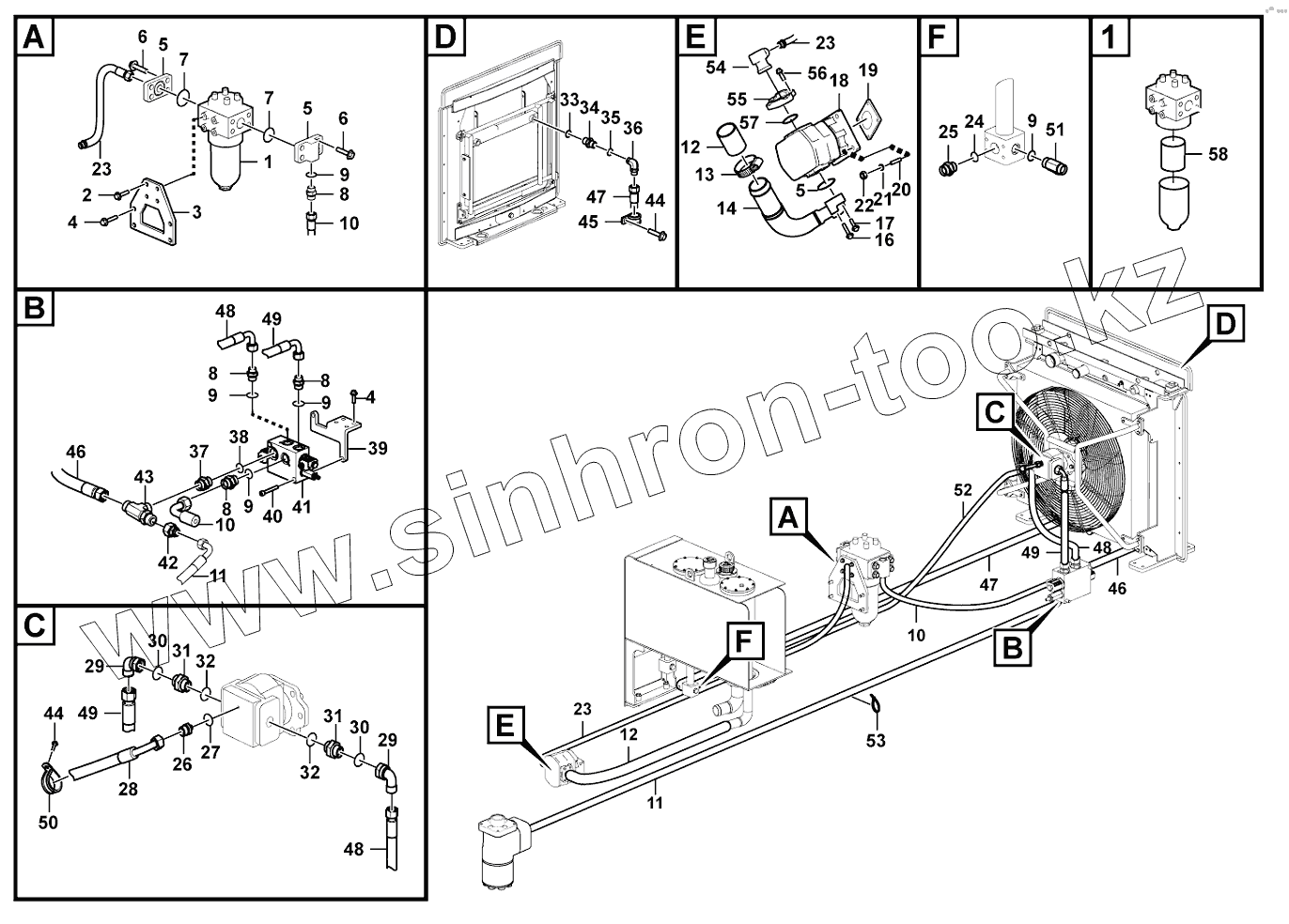 Каталог запасных частей к технике: SDLG LG938F. Fan hydraulic motor assembly