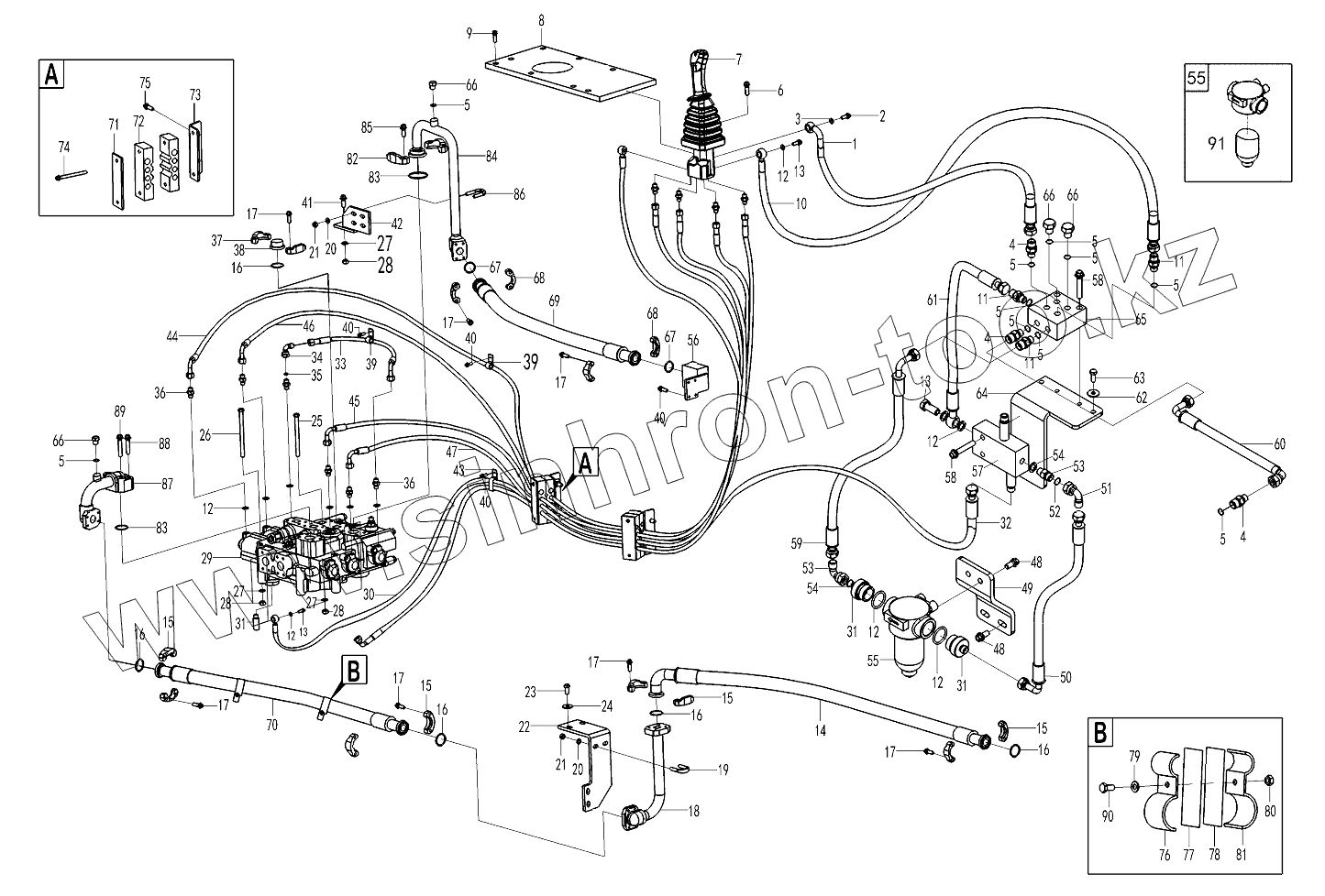 Каталог запасных частей к технике: SDLG LG944MSK. Hydraulic control assembly