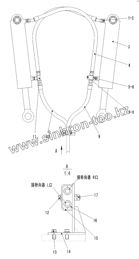 Каталог запасных частей к технике: SDLG LG952H. STEERING CYLINDER ASSEMBLY
