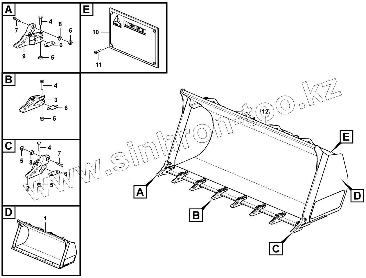 Каталог запасных частей к технике: SDLG LG952N. 2.8 Bucket