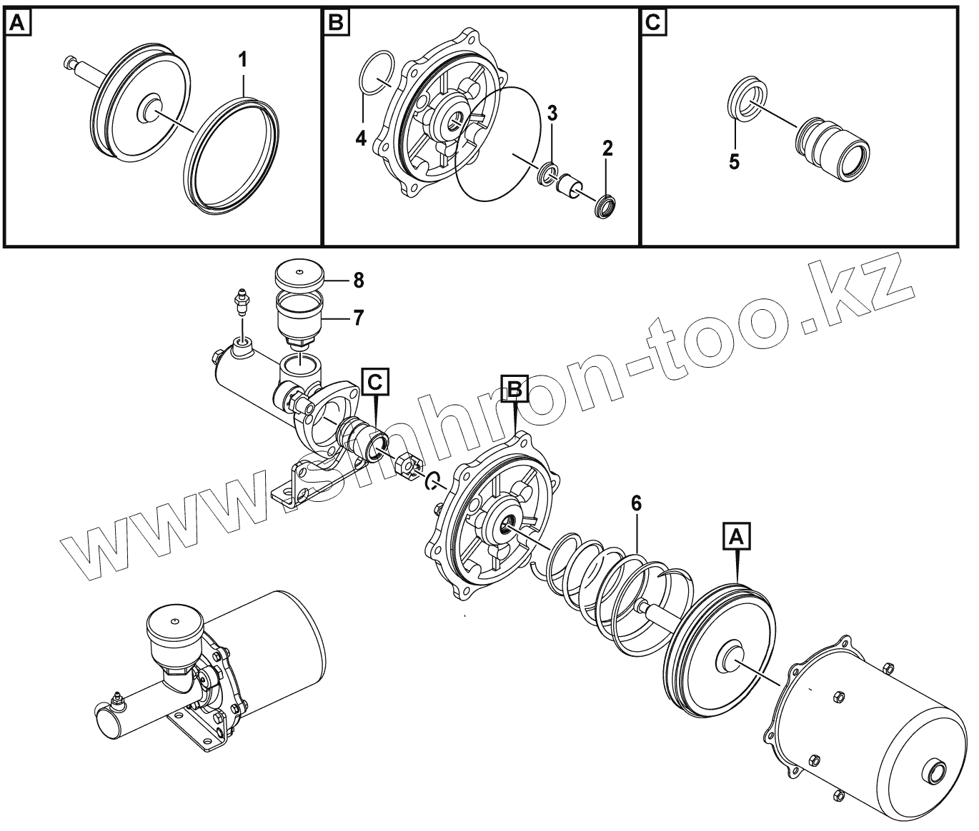 Каталог запасных частей к технике: SDLG LG952N. (340201) Pneumatic cylinder