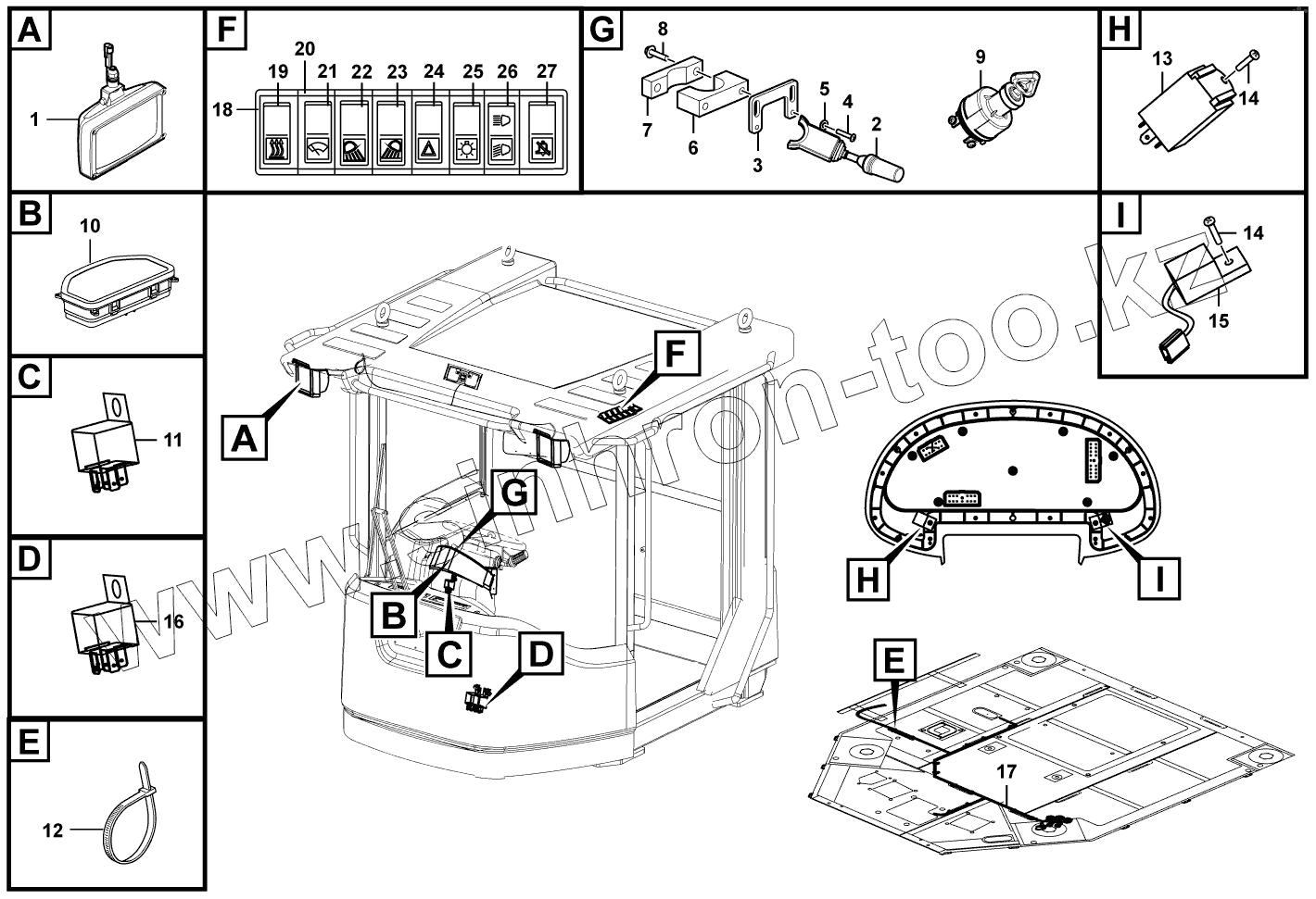 Каталог запасных частей к технике: SDLG LG952N. Cab equipment