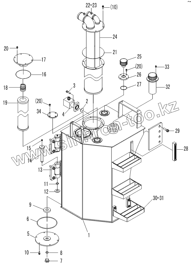 Каталог запасных частей к технике: SDLG LG953. HYDRAULIC TANK ASSEMBLY