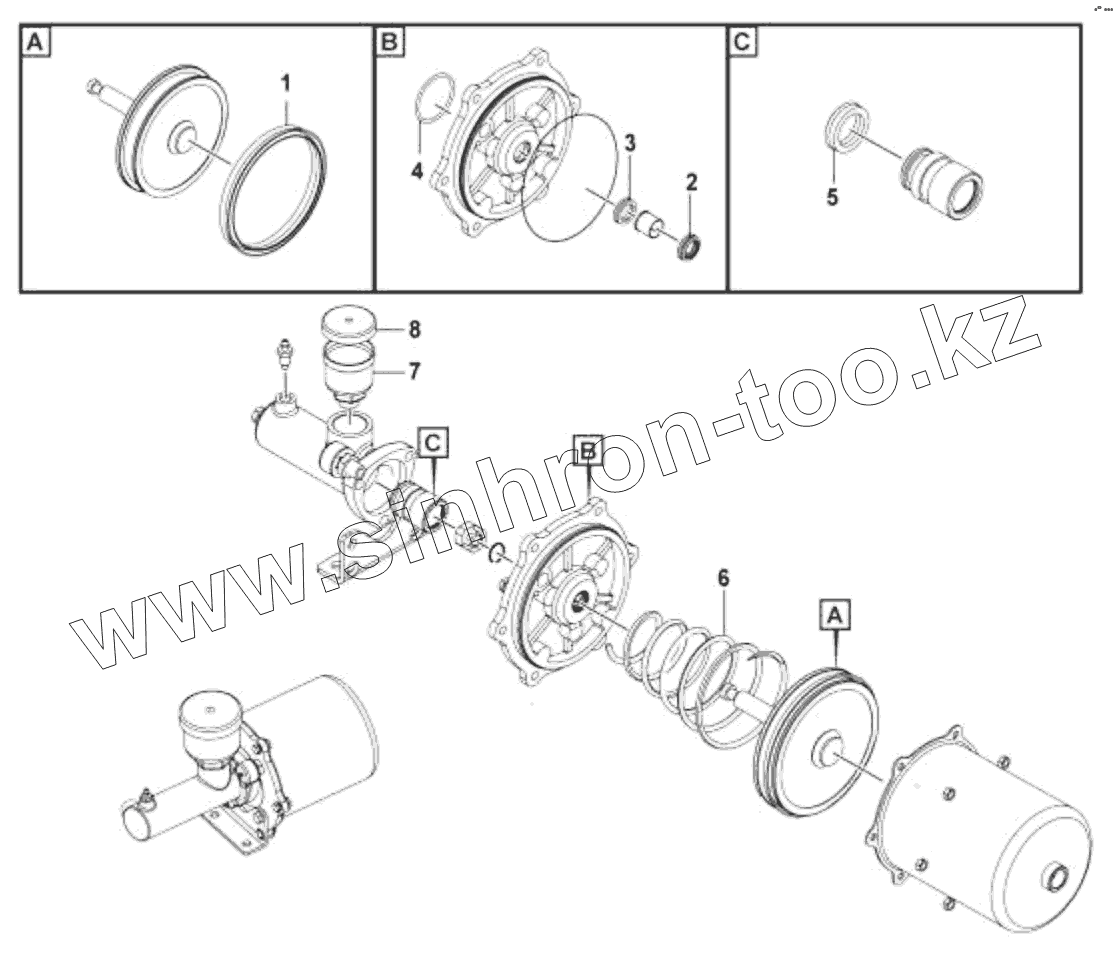 Каталог запасных частей к технике: SDLG LG953N. Pneumatic cylinder assembly (340201)