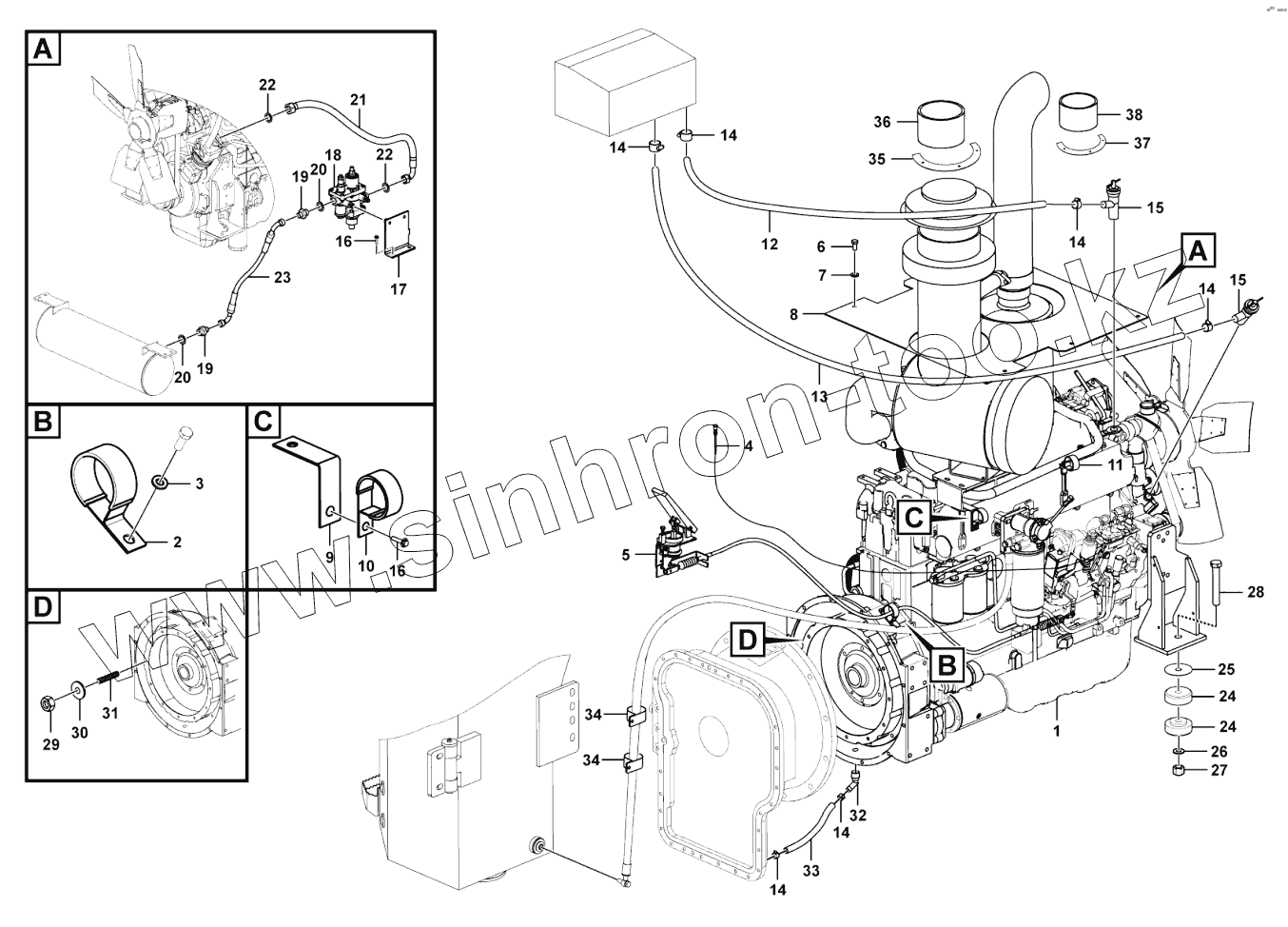 Каталог запасных частей к технике: SDLG LG955N. Engine asembly