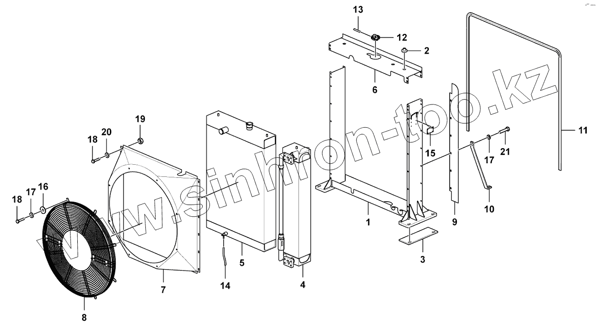 Каталог запасных частей к технике: SDLG LG955N. Radiator assembly (370725)