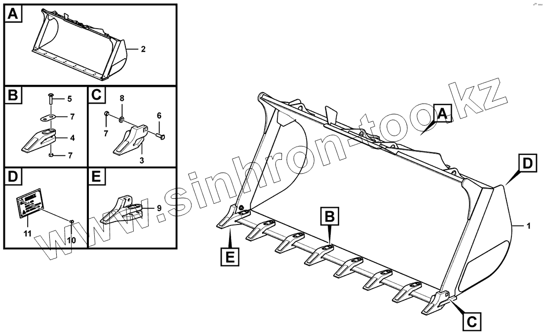 Каталог запасных частей к технике: SDLG LG956F. 3х3024 Bucket