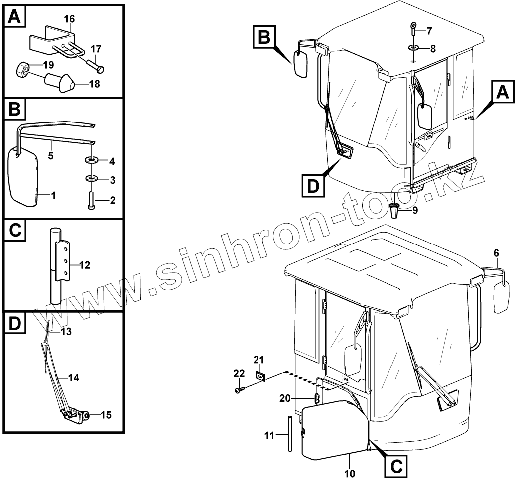 Каталог запасных частей к технике: SDLG LG956F. Cab assembly