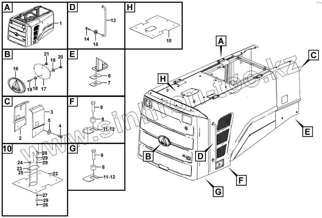 Каталог запасных частей к технике: SDLG LG956F. Hood
