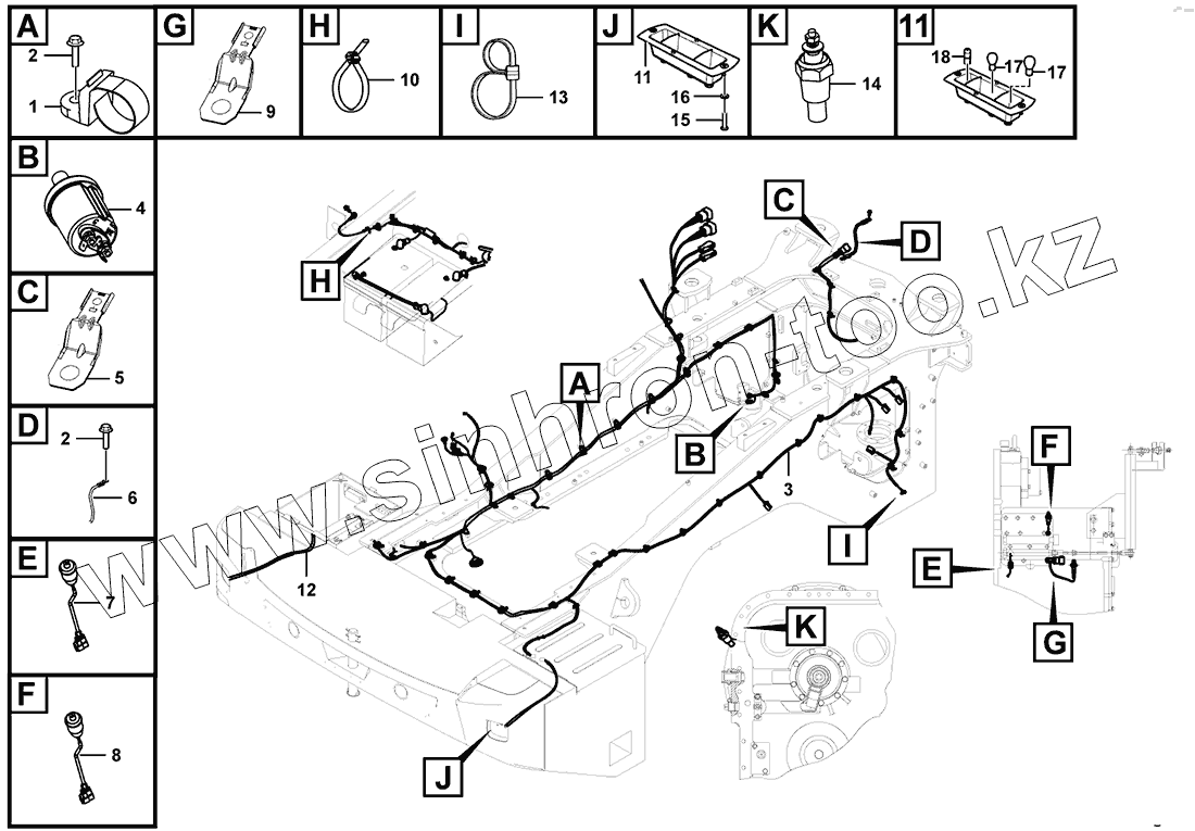 Каталог запасных частей к технике: SDLG LG956F. Rear frame electric assembly