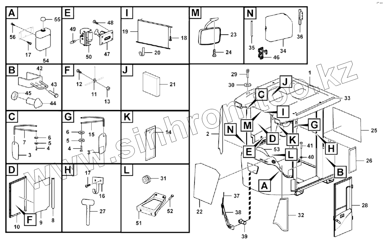 Каталог запасных частей к технике: SDLG LG956FH. Cab assembly
