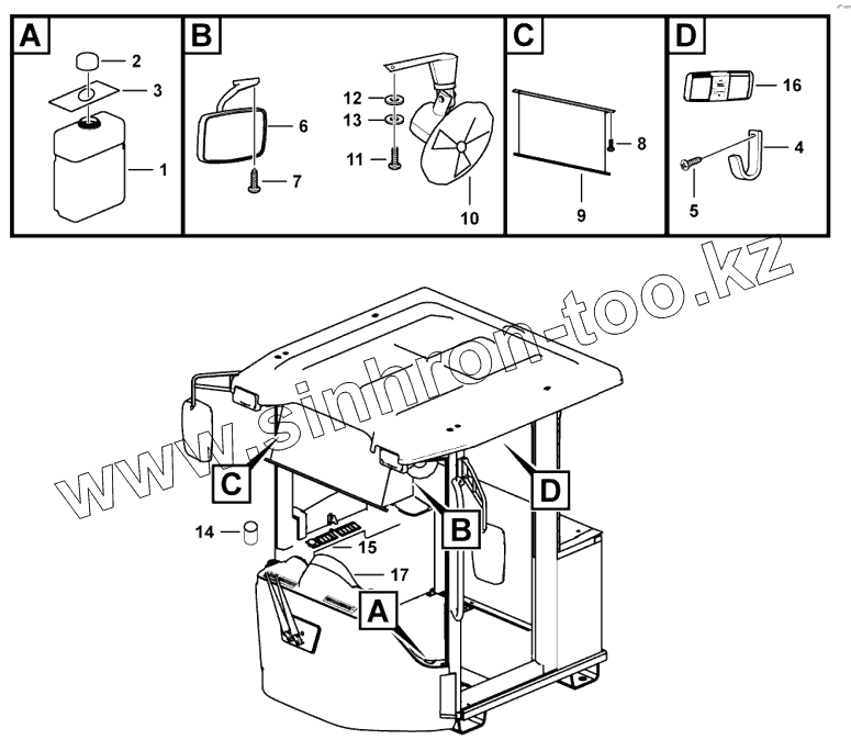 Каталог запасных частей к технике: SDLG LG956L. Cab assembly