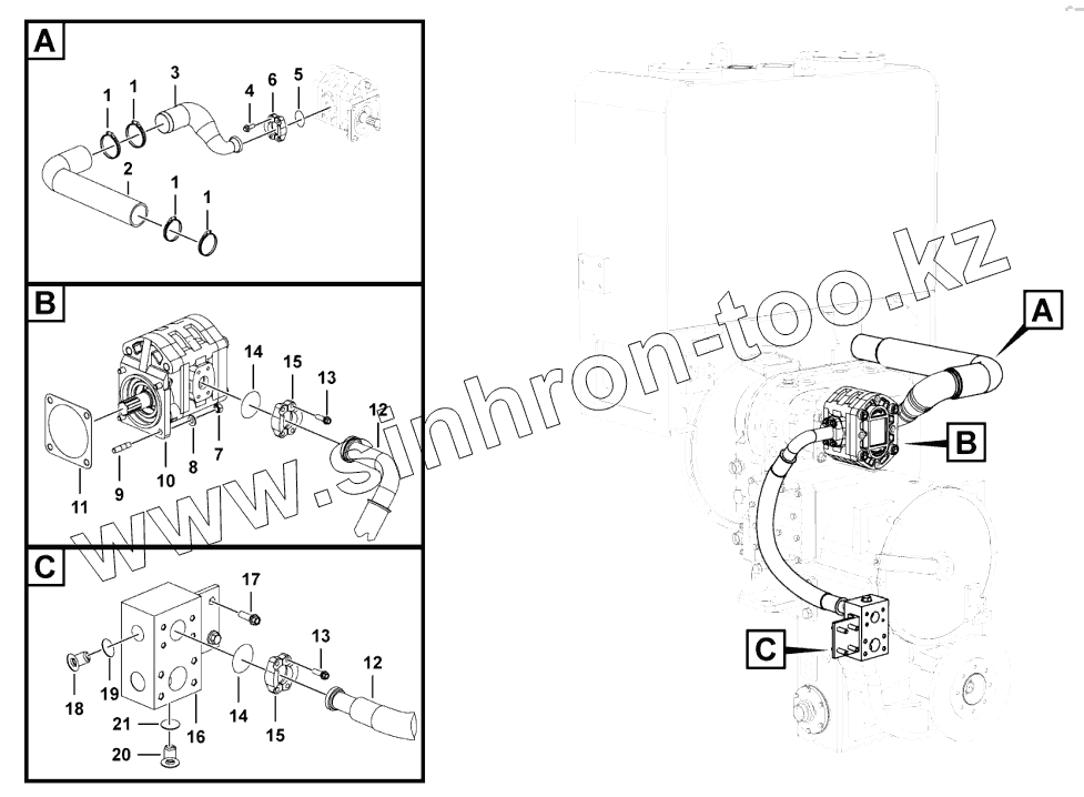 Каталог запасных частей к технике: SDLG LG956L. Working hydraulic pump assembly