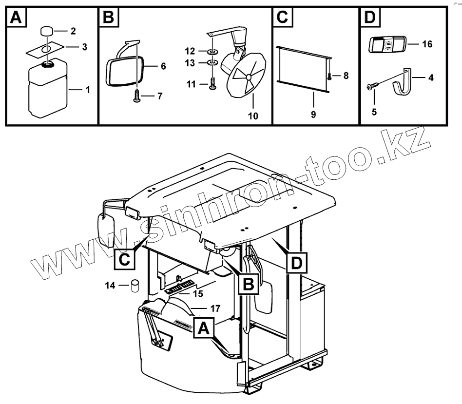 Каталог запасных частей к технике: SDLG LG956V. Cab inner parts assembly