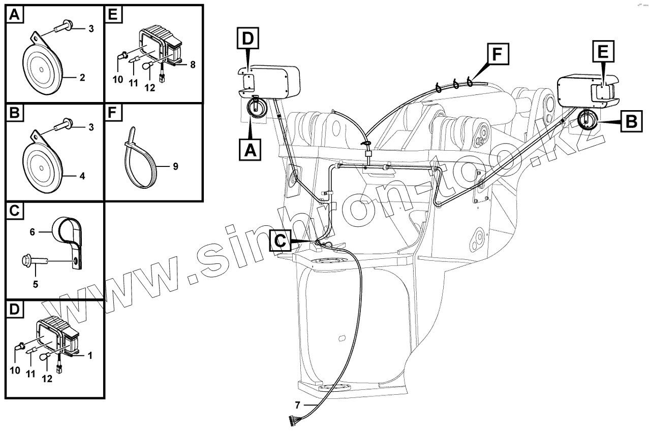 Каталог запасных частей к технике: SDLG LG956V. Electrical assembly-front frame