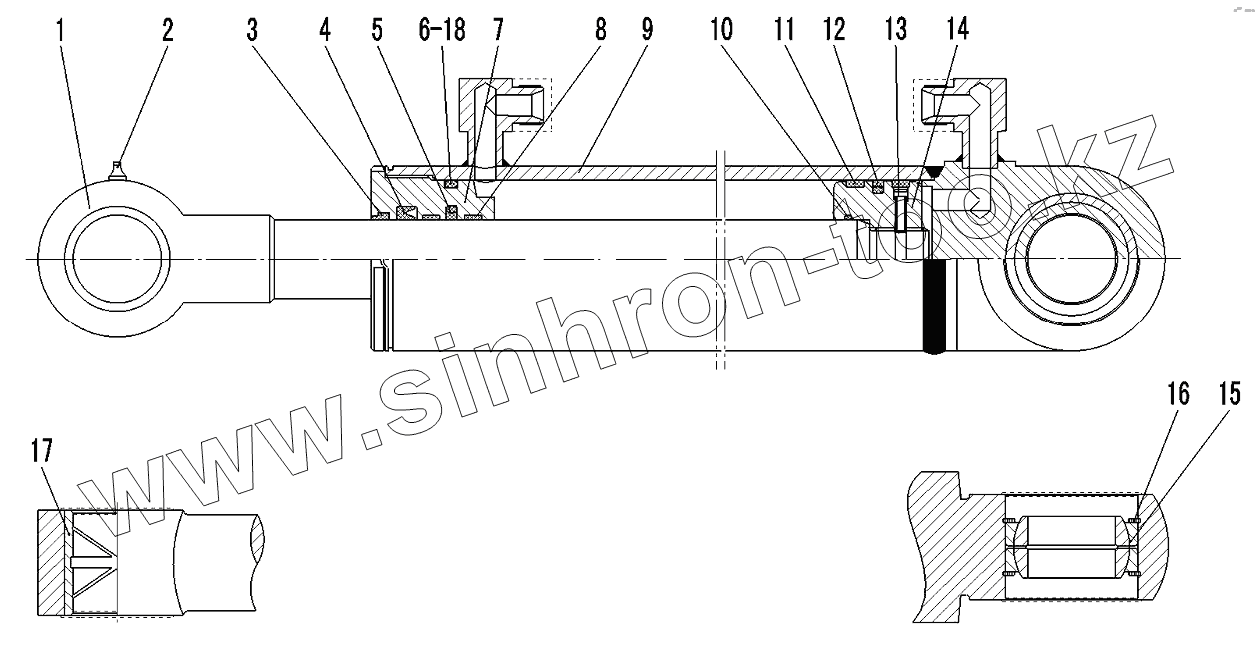 Каталог запасных частей к технике: SDLG LG958L. STEERING CYLINDER (371368)