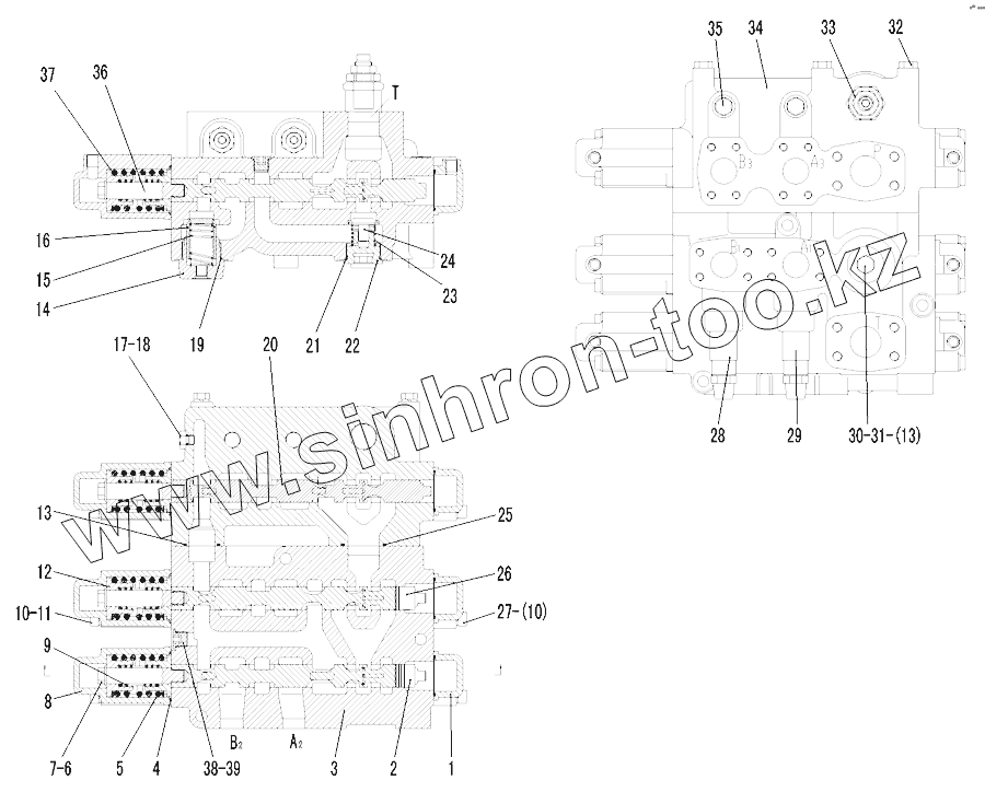 Каталог запасных частей к технике: SDLG LG958L. CONTROL VALVE D32A-17.5 (331001)