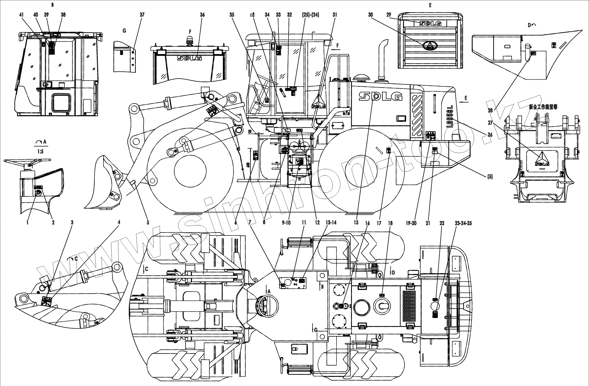 Каталог запасных частей к технике: SDLG LG958L. SIGN AND LOGO