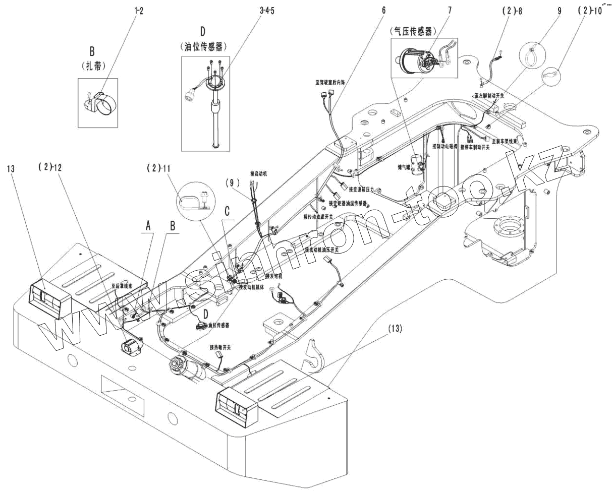 Каталог запасных частей к технике: SDLG LG958N. Electrical assembly-rear frame