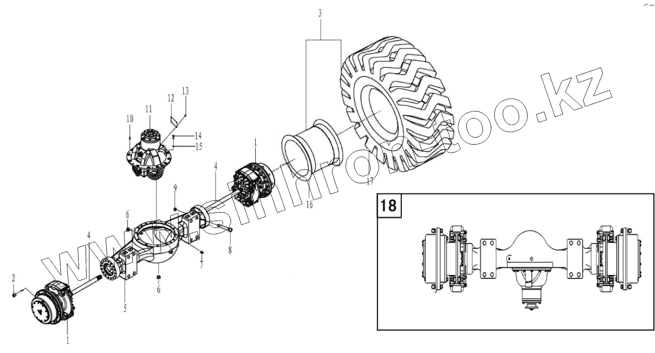 Каталог запасных частей к технике: SDLG LG958N. Front axle assembly