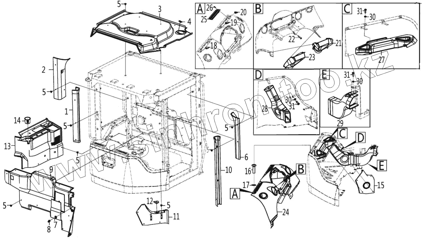 Каталог запасных частей к технике: SDLG LG958N. Interior assembly