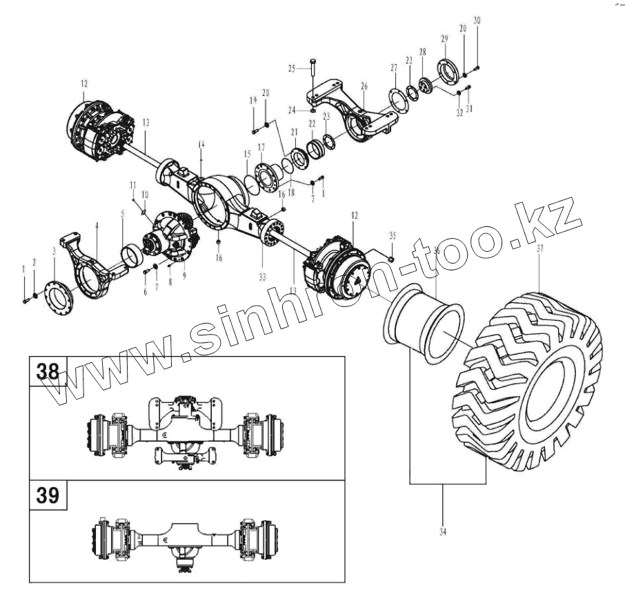 Каталог запасных частей к технике: SDLG LG958N. Rear axle assembly