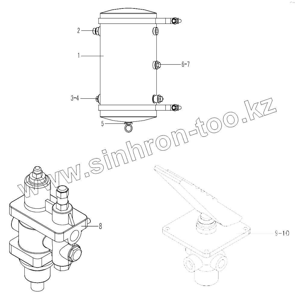 Каталог запасных частей к технике: SDLG LG968. AIR RESERVOIR, BRAKE CONTROL VALVE, AIR DRYER