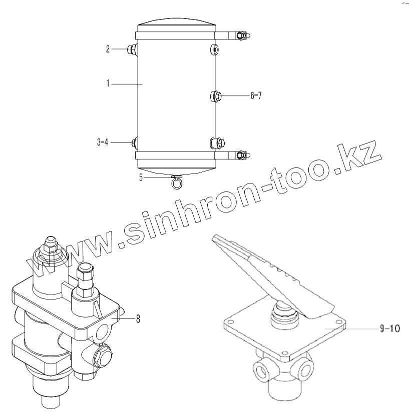Каталог запасных частей к технике: SDLG LG969. AIR RESERVOIR, BRAKE CONTROL VALVE, AIR DRYER