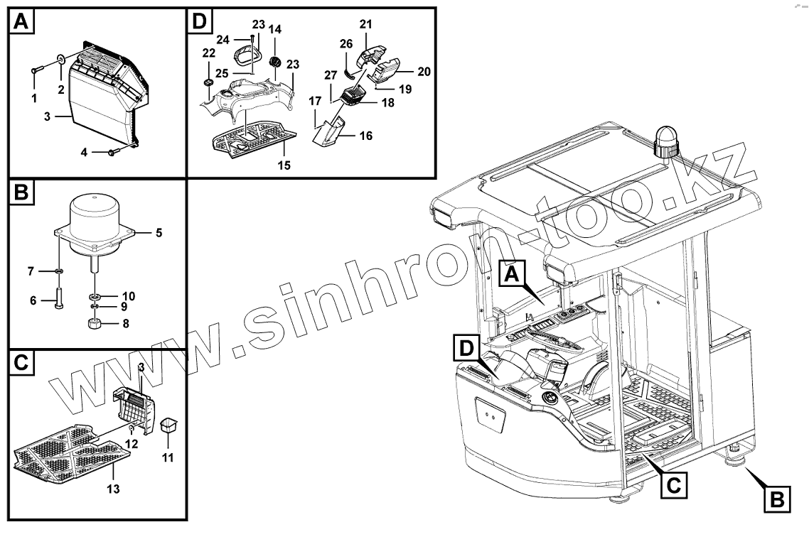 Каталог запасных частей к технике: SDLG LG969N. Cab accessories