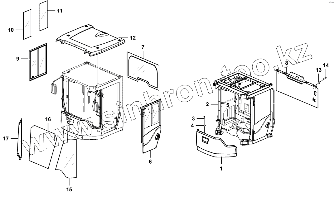 Каталог запасных частей к технике: SDLG LG969N. Cab flamework assembly