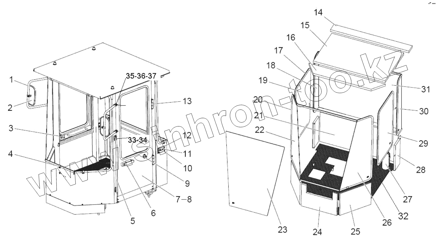 Каталог запасных частей к технике: SEM616B. Cab (sale)