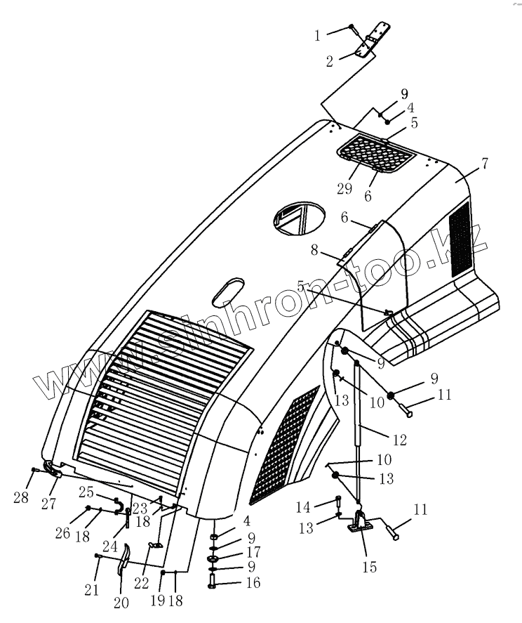 Каталог запасных частей к технике: Shantui Каток SR12-5. HOOD ASSY