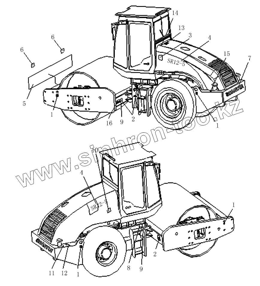 Каталог запасных частей к технике: Shantui Каток SR12-5. LABEL PLATE LAYOUT
