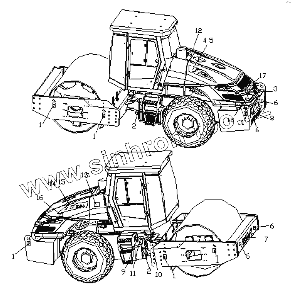 Каталог запасных частей к технике: Shantui Каток SR14M-2. LABEL PLATE LAYOUT