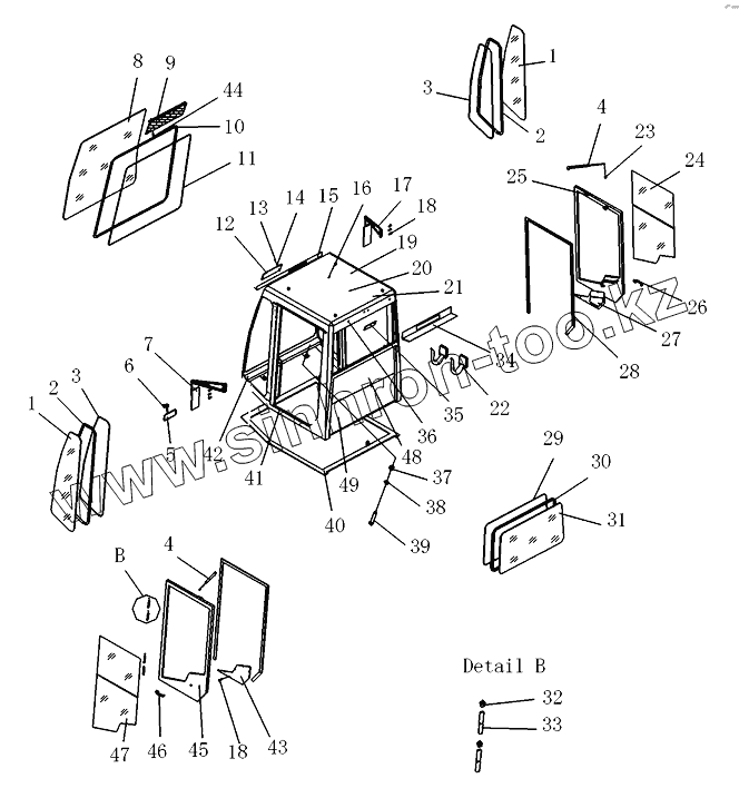Каталог запасных частей к технике: Shantui Каток SR18. CAB ASSY