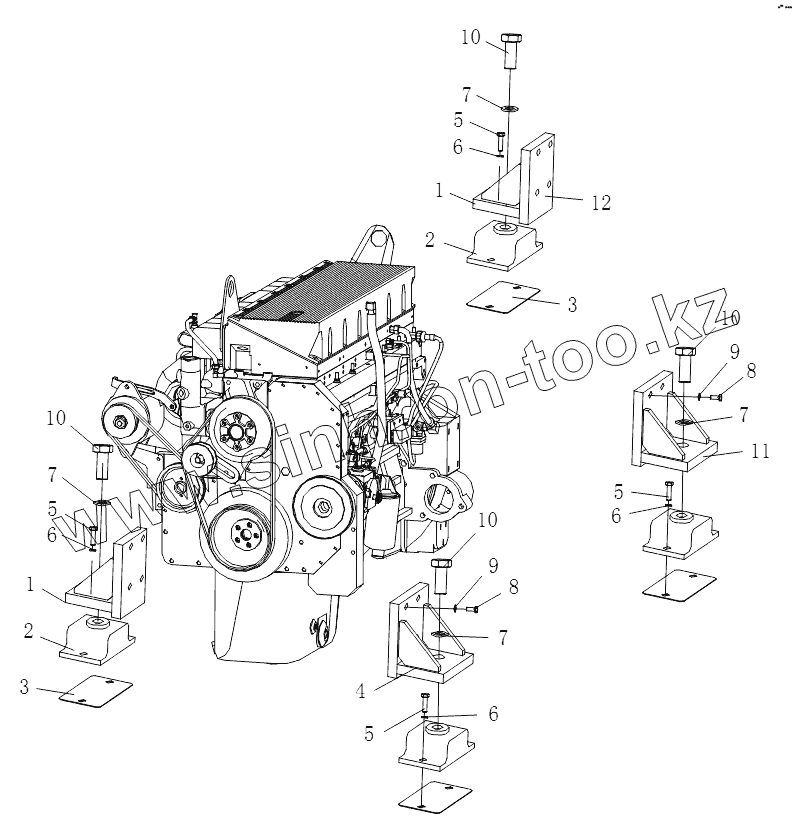Каталог запасных частей к технике: Shantui Каток SR18M. ENGINE MOUNT (FOR SR18M/P-2)