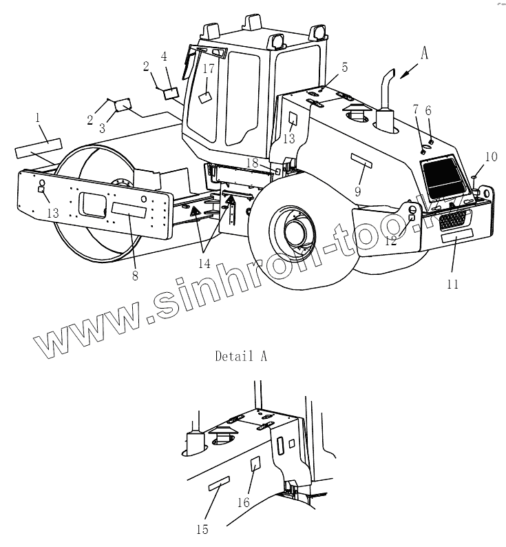Каталог запасных частей к технике: Shantui Каток SR18M. MARKS AND PLATES